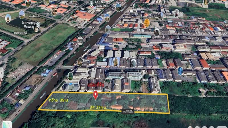 ที่ดินขนาดประมาณ 6 ไร่เศษ (หน้ากว้าง 38 ม. ลึก 274 ม.) รูปสี่เหลี่ยมผืนผ้าสวย จัดวางผังอาคารง่าย