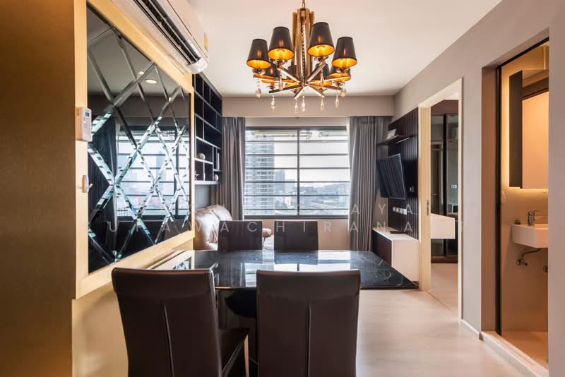 Fully furnished 2 bedrooms, 1 bathroom condo for rent with a floorsize of 42 squaremeters, located on the 15th floor, at Rhythm