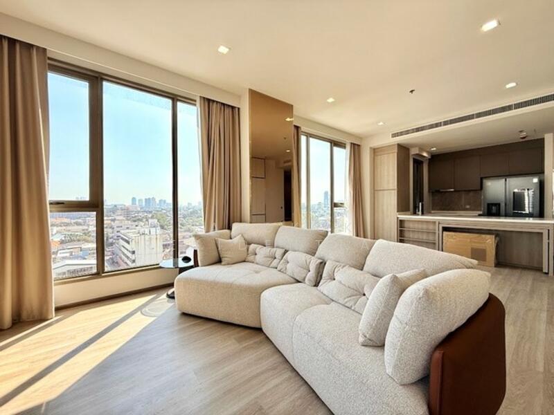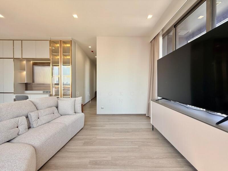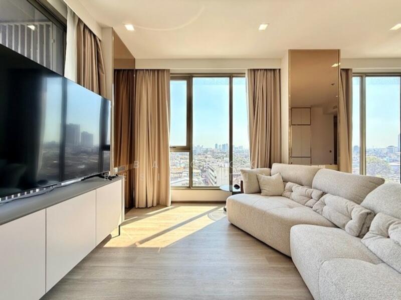 This beautiful 2 bedroom luxury condominium is located within Rhythm Charoenkrung Pavillion, a refined riverside residence in one of Bangkok’s most desirable neighborhoods. Situated on a low floor, the unit offers 109 square meters of thoughtfully designed living space. The interior blends modern aesthetics with practical comfort, featuring tasteful contemporary furnishings and inviting home atmosphere. Every area is carefully arranged to maximize space, natural light, and everyday functionality.