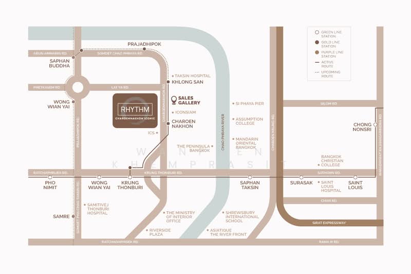 RHYTHM Charoennakhon Iconic. First of all, I must commend AP for finding this plot of land really well. It is close to the Gold Line BTS and ICON SIAM, and is only 120 meters away. Currently, there are no new condos within walking distance of ICON SIAM like this, except for 2 condos that are closer: The Residences at Mandarin Oriental Bangkok and Magnolias Waterfront Residences ICONSIAM, an Ultimate Class condo that is part of the Mega Project ICONSIAM. After explaining like this, does it make sense that RHYTHM is located in the same location as one of the most valuable condos in Thailand? But it is not located next to the river. It is located on Charoen Nakhon Road, opposite ICON SIAM. The project has not yet been officially launched, but some information has been released. Therefore, we have compared the information with 9 condos in the surrounding area. If anyone is looking for a condo on Charoen Nakhon Road - Somdet Chao Phraya Road - Prajadhipok Road - Krung Thon Buri Road, within a distance of approximately 3 km.