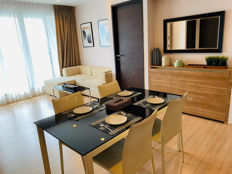 Fully furnished 2 bedrooms, 2 bathrooms condo for rent with a floorsize of 66 squaremeters, located on the 21st floor, at Rhythm