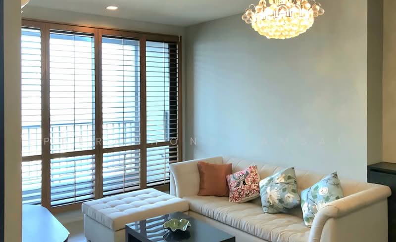 Fully furnished 2 bedrooms, 1 bathroom condo for rent with a floorsize of 55 squaremeters, located on the 22nd floor, at Rhythm