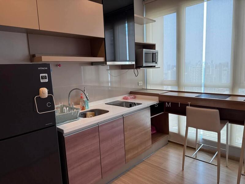 Fully furnished 1 bedroom, 1 bathroom condo for rent with a floorsize of 35 squaremeters, located on the 30th floor, at Rhythm