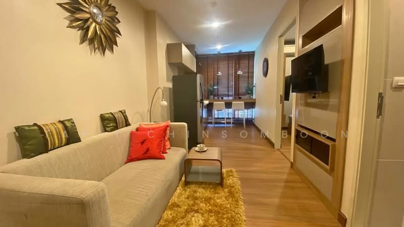 Fully furnished 1 bedroom, 1 bathroom condo for rent with a floorsize of 35 squaremeters, located on the 19th floor, at Rhythm