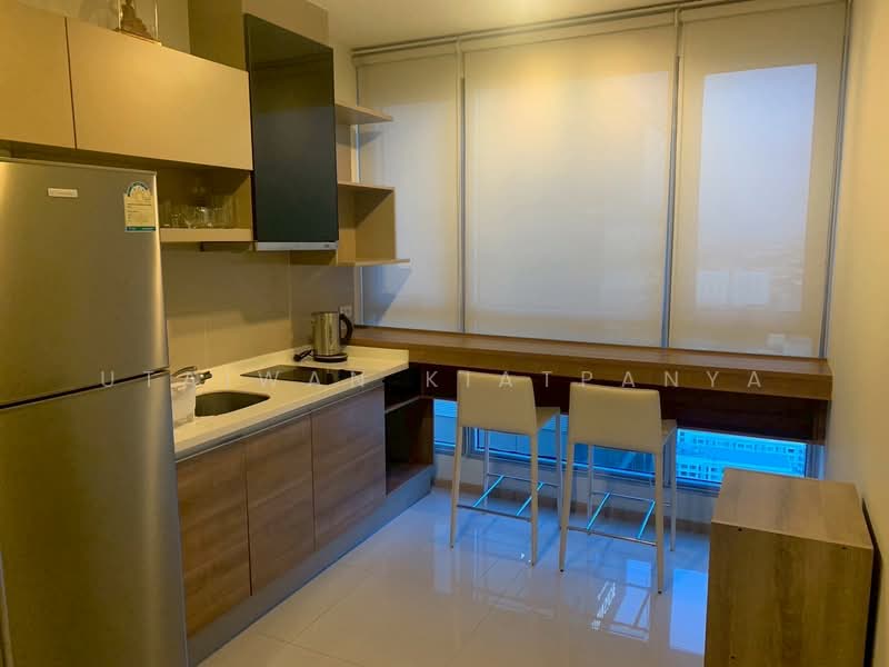 Fully furnished 1 bedroom, 1 bathroom condo for rent with a floorsize of 45 squaremeters, located on the 34th floor, at Rhythm
