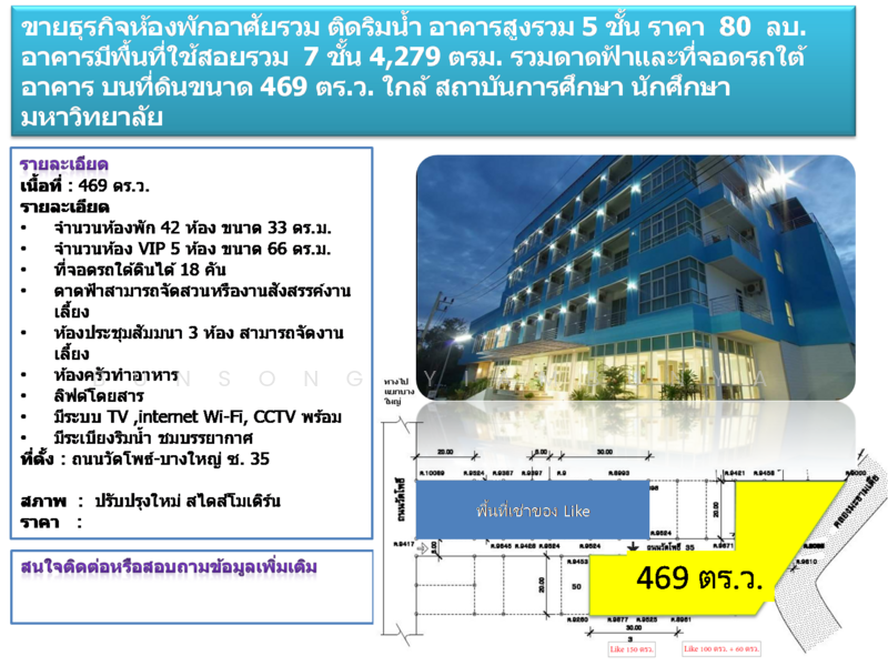 Floor size of this unit at Riverfront 5-Storey Building for Hotel or Senior Care Investment in Surat Thani is 4,279 sqm.