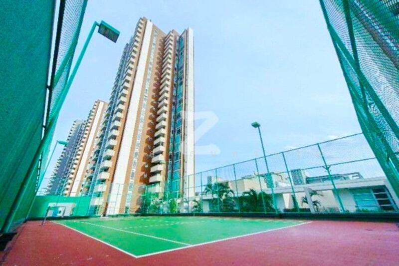 Complete amenities including a central garden, swimming pool, fitness center, and tennis court.