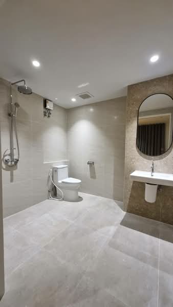 Brand new 60-sqmone-bedroom apartment with 2-3 beds. One bedroom, one living room, one large wheelchair accessible restroom with rainshower. Included are pantry with microwave oven and fridge, 40-inch TV, balcony, dining table for 4, WIFI, curtain, A/C, water heater, bed with mattress equipped with automatic night light, cloth cabinet with built-in lighting.