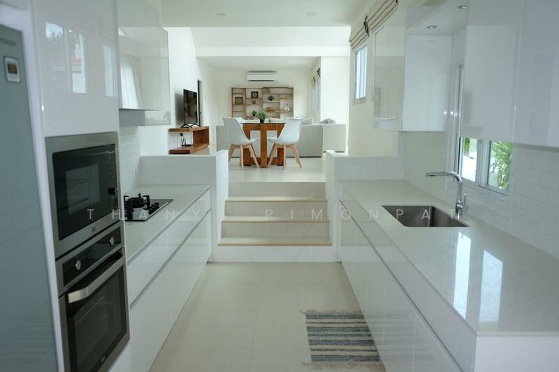 The villa offers 250 sqm of living space on a 500 sqm plot, featuring 3 spacious bedrooms, 3 modern bathrooms, a private 4×6 m saltwater pool, and a large outdoor terrace ideal for relaxing or entertaining. Inside, a European-style kitchen and bright open living areas create a welcoming home feel. Practical comforts include private parking, government electricity, deep well water, and easy road access.