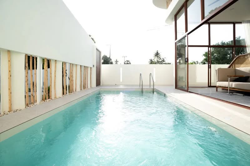 Inside, the villa features a bright open-plan living and dining area with a fully equipped modern kitchen, designed for both everyday living and entertaining. Each bedroom comes with its own en-suite bathroom, ensuring privacy and convenience. Floor-to-ceiling windows create an airy atmosphere, seamlessly connecting indoor spaces with the private outdoor areas.