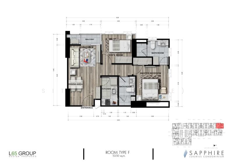 Floor size of this unit at Sapphire Luxurious Condominium Rama III is 43 sqm.