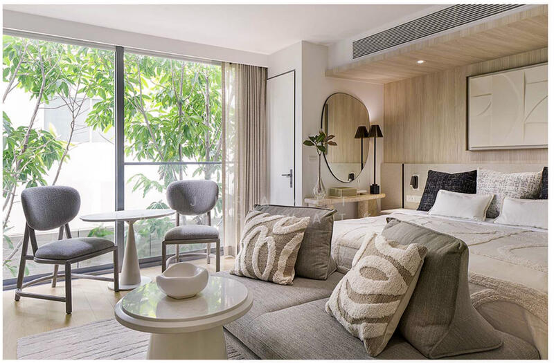 PROMSRI SCOPE Promsri is a tropical sanctuary within Sukhumvit - keeping the city’s excitement at a convenient arm’s length, while still providing peace and privacy for those seeking solitude. Inspired by the lush greenery and seclusion of the Yucatan’s natural cenotes, SCOPE Promsri merges the indoors and outdoors to create a quiet escape right in the middle of three alluring districts: Soi Prompong (Sukhumvit 39), Soi Klang (Sukhumvit 49) and Soi Thonglor (Sukhumvit 55). With SCOPE’s sophomore project, the team collaborated with luxury French furniture brand Ligne Roset to design exclusive pieces for the residence. Each room features Ligne Roset’s bestselling Prado Sofa in limited edition colourways, as well as the newly designed Promsri Table. Disconnect from the outside world and enjoy peace at home.