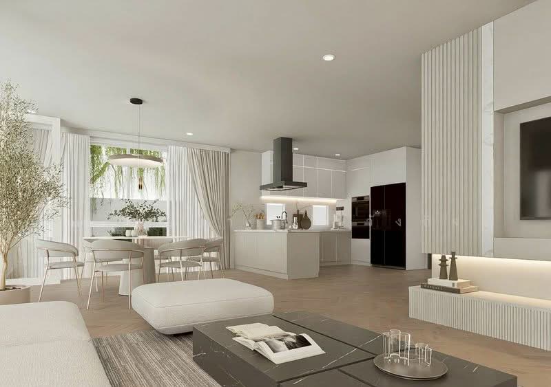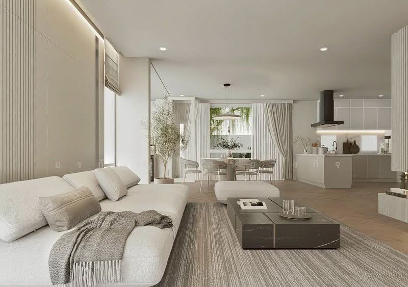 Two-storey private pool villa for sale with a spacious layout, modern design, and fully furnished with appliances.