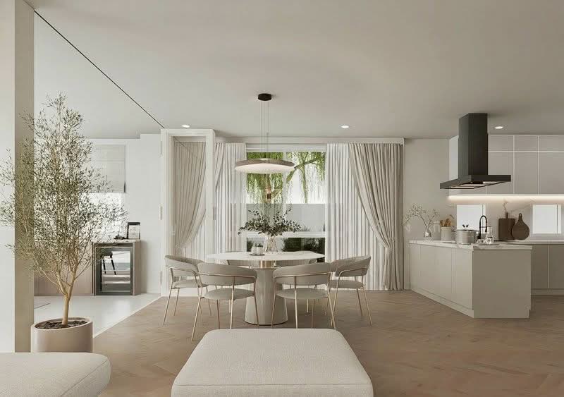 • 1 living room with a sitting area and dining zone with a 6-seat table set