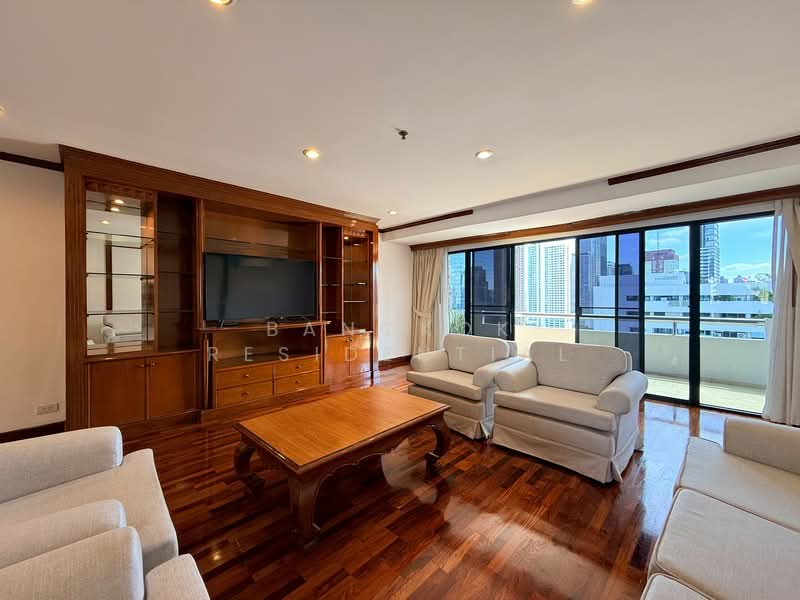 This spacious 4 bedroom penthouse apartment on Sukhumvit 13 offers 400 square meters of comfortable living space. Positioned on a high floor, the residence features sweeping city views and comes fully furnished in an elegant classic style. The interiors are thoughtfully designed with warm tones, tasteful furnishings, and timeless décor that create an inviting atmosphere. Generous living and dining areas provide plenty of room to relax, work, or entertain, making it an ideal home for families or those who value space and comfort in the city.