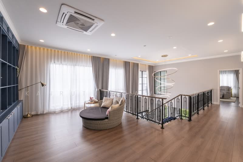 For rent: luxury single detached house at Setthasiri Bangna–Suvarnabhumi featuring 5 bedrooms and 6 bathrooms with a usable area of 407 sqm on a land size of 96 sq.wah. Rental price is 200,000 THB per month. The home offers spacious living, functional layout, and privacy, ideal for families seeking premium residential comfort.