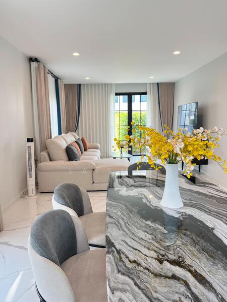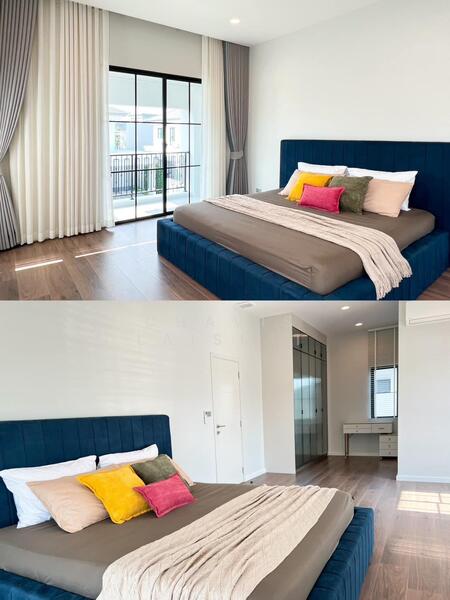 Setthasiri Serithai, Modern Classic style detached house, new project from Sansiri. On Kanchanaphisek Road At a starting price of 13-25 million baht*, usable area 206 - 321 sq m. Project highlights are summarized as follows. Location : Near Fashion Island, expressway and BTS, surrounded by amenities. both international schools Leading hospital and department stores Usable space and function : There is a Universal Design to support every generation. For elderly rooms, in some home designs the floors are made with Absorption Floor to reduce impact. The bedroom and bathroom floor levels are the same, with no steps for ease of use. Common areas : There is a large clubhouse with complete facilities including a lobby, swimming pool with children's pool, fitness center, and common garden. Safety and Privacy : The project emphasizes privacy with 109 units of houses. The entrance-exit doors to the project are double gates and have a Digital Fence that sends an alarm when there are intruders. / The house has a Magnetic Sensor Motion Sensor and a Digital Door Lock. Come give it to me. Innovation : There is green home innovation by choosing materials that make the house energy efficient. Solar panels are installed to save electricity. And there is a clean air filtration system inside the house.