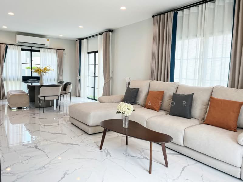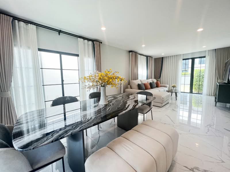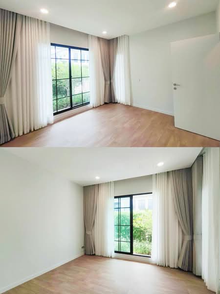 Setthasiri Serithai, Modern Classic style detached house, new project from Sansiri. On Kanchanaphisek Road At a starting price of 13-25 million baht*, usable area 206 - 321 sq m. Project highlights are summarized as follows. Location : Near Fashion Island, expressway and BTS, surrounded by amenities. both international schools Leading hospital and department stores Usable space and function : There is a Universal Design to support every generation. For elderly rooms, in some home designs the floors are made with Absorption Floor to reduce impact. The bedroom and bathroom floor levels are the same, with no steps for ease of use. Common areas : There is a large clubhouse with complete facilities including a lobby, swimming pool with children's pool, fitness center, and common garden. Safety and Privacy : The project emphasizes privacy with 109 units of houses. The entrance-exit doors to the project are double gates and have a Digital Fence that sends an alarm when there are intruders. / The house has a Magnetic Sensor Motion Sensor and a Digital Door Lock. Come give it to me. Innovation : There is green home innovation by choosing materials that make the house energy efficient. Solar panels are installed to save electricity. And there is a clean air filtration system inside the house.