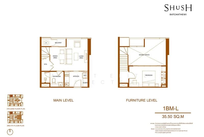 SHUSH Ratchathewi is a 32-storey condominium project situated along Phaya Thai Road in the heart of Ratchathewi CBD, just 140 metres from the Bangkok Transit System Ratchathewi Station and close to Siam Discovery within an 800 metres proximity. Developed by the Sansiri Public Company Limited, this project covers an area of approximately 3,200 square metres, featuring 383 units with living spaces ranging from 31.25-117.25 square metres, comprising 1-3 bedrooms and 1-3 bathrooms. Completion is expected in the year 2026 and the project adopts a freehold ownership structure. Due to its strategically advantageous location, residents of this project enjoy easy access to key destinations and lifestyle hubs. Within a 5 kilometre radius you have access to King Power Rangnam, Siam Paragon, Central World, MBK Center, Suan Dusit University and Rajavithi Hospital. In terms of convenient transportation, residents can choose from up to 4 connecting routes to other areas. These include Phetchaburi Road, approximately 120 metres from the project; Phitsanulok Road, about 1.1 kilometres away; Si Ayutthaya Road, roughly 1.6 kilometres away and Ratchathewi Road, approximately 2.6 kilometres away. SHUSH Ratchathewi embodies the concept of ‘Simphony,’ a new chapter in relaxed lifestyle living within the Ratchathewi CBD, seamlessly integrating green spaces and surrounded by an abundance of comprehensive amenities. Concealed ceiling air conditioning units Kitchen countertops adorned with large marble pattern tiles, equipped with wall-mounted and floor-standing cabinets. Electric stovetop, cooker hood, sink and microwave. Fully-equipped bathrooms with partitioned shower areas. ART DNA designed power outlets and switches. Installation of a 5 systems digital door lock from the Philips brand. The room configurations within the project are as follows: Loft units on 3rd-22th floors: With a ceiling height of 4.5 metres. The mezzanine has a ceiling height of 2.25 metres, while the bedroom area has a ceiling height of 2.2 metres. Common area expenses are calculated based on the actual title deed, specifically for the area on the 1st floor, excluding the mezzanine area. 1 Bedroom: This unit, with a title deed area of 28.50-28.75 square metres, has a living area 40.75-41.25 square metres, and is designed to accommodate 1 x bedroom, 1 x bathroom and 1 x foyer. 1 Bedroom: This unit, with a title deed area of 34.25-35.50 square metres, has a living area 49-50.50 square metres, and is designed to accommodate 1 x bedroom, 1 x bathroom and 1 x foyer. 2 Bedrooms: This unit, with a title deed area of 41.75-46.75 square metres, has a living area of 62.75-75.75 square metres, and is designed to accommodate 2 x bedrooms, 2 x bathrooms and 1x foyer. Simplex units on 23rd-24th floor and 26th-31st floor: With a ceiling height of 2.7 metres. 1 Bedroom: This unit, with a living area of 31.25-57.25 square metres, is designed to accommodate 1 x bedroom, 1 x bathroom and 1 x foyer. 2 Bedrooms: This unit, with a living area of 60 square metres, is designed to accommodate 2 x bedrooms, 1 x bathroom and 1 x foyer. 2 Bedrooms: This unit, with a living area of 70.25-89.50 square metres, is designed to accommodate 2 x bedrooms, 2 x bathrooms and 1 x foyer. 3 Bedrooms: This unit, with a living area of 97-117.25 square metres, is designed to accommodate 3 x bedrooms, 3 x bathrooms and 1 x foyer. SHUSH Ratchathewi is located adjacent to Phaya Thai Road, in the Phaya Thai Subdistrict, Ratchathewi District, Bangkok. To initiate travel to the project from Rama 1 Road, starting near Siam Paragon on the side facing the Phra Nakhon District, proceed for approximately 450 metres and make a right turn onto Phaya Thai Road. Continue on for another 900 metres and you will find the project sign on the left-hand side. For those coming from other routes, notable landmarks for navigation include: Ratchathewi Intersection: 200 metres from the project. Phaya Thai Intersection: 500 metres from the project. Uruphong Intersection: 2.1 kilometres from the project. Parking facilities: Accommodating 222 vehicles, equivalent to 58% of the total number of units. This includes 216 automated parking spaces and an additional 6 general parking spaces. The entire area is equipped with closed-circuit cameras (CCTV) and there are 24-hour security personnel. Elevators: The project features 3 passenger elevators and 1 cargo elevator. 1st Floor: A spacious lobby adorned with art installations, a waiting area for visitors, a public garden and a semi-outdoor observation point. 2nd Floor: Laundry room 3rd Floor: Garden view and cityscape observation grandstand. 24th Floor: Relaxation and viewing room, business meeting room, tutorial classroom, 2 x private relaxation room, entertainment room for gaming, listening to music and watching movies, plus a serene garden for relaxation. 25th Floor: Swimming pool with ozone system, approximately 25 metres in length; a segregated children's pool for safety; a fitness room equipped with a comprehensive range of exercise equipment 32nd Floor and Rooftop: Public park, serene garden, viewing point and backyard garden for growing vegetables. Personal assistant: Available every day from 8:00 am. - 8:00 pm. offering laundry services, room cleaning, parcel delivery and event planning reservation services. Water system: Within both the residential units and common areas, the HYDRO SMART water system is implemented to reduce dregs in the sanitary ware. Security system: Keycard access, digital door locks are installed in every unit, CCTV coverage, 24/7 personnel and a LIV-24 security system by Sansiri, ensure constant security surveillance. SHUSH Ratchathewi is centrally located in the Ratchathewi CBD, offering a highly convenient and bustling urban lifestyle. Details are further outlined as follows. Taxis available in front of the project. Motorcycle taxis available in front of the project. Bangkok Transit System Ratchathewi Station: 170 metres from the