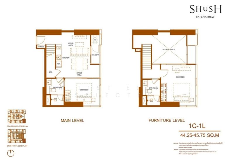 SHUSH Ratchathewi is a 32-storey condominium project situated along Phaya Thai Road in the heart of Ratchathewi CBD, just 140 metres from the Bangkok Transit System Ratchathewi Station and close to Siam Discovery within an 800 metres proximity. Developed by the Sansiri Public Company Limited, this project covers an area of approximately 3,200 square metres, featuring 383 units with living spaces ranging from 31.25-117.25 square metres, comprising 1-3 bedrooms and 1-3 bathrooms. Completion is expected in the year 2026 and the project adopts a freehold ownership structure. Due to its strategically advantageous location, residents of this project enjoy easy access to key destinations and lifestyle hubs. Within a 5 kilometre radius you have access to King Power Rangnam, Siam Paragon, Central World, MBK Center, Suan Dusit University and Rajavithi Hospital. In terms of convenient transportation, residents can choose from up to 4 connecting routes to other areas. These include Phetchaburi Road, approximately 120 metres from the project; Phitsanulok Road, about 1.1 kilometres away; Si Ayutthaya Road, roughly 1.6 kilometres away and Ratchathewi Road, approximately 2.6 kilometres away. SHUSH Ratchathewi embodies the concept of ‘Simphony,’ a new chapter in relaxed lifestyle living within the Ratchathewi CBD, seamlessly integrating green spaces and surrounded by an abundance of comprehensive amenities. Concealed ceiling air conditioning units Kitchen countertops adorned with large marble pattern tiles, equipped with wall-mounted and floor-standing cabinets. Electric stovetop, cooker hood, sink and microwave. Fully-equipped bathrooms with partitioned shower areas. ART DNA designed power outlets and switches. Installation of a 5 systems digital door lock from the Philips brand. The room configurations within the project are as follows: Loft units on 3rd-22th floors: With a ceiling height of 4.5 metres. The mezzanine has a ceiling height of 2.25 metres, while the bedroom area has a ceiling height of 2.2 metres. Common area expenses are calculated based on the actual title deed, specifically for the area on the 1st floor, excluding the mezzanine area. 1 Bedroom: This unit, with a title deed area of 28.50-28.75 square metres, has a living area 40.75-41.25 square metres, and is designed to accommodate 1 x bedroom, 1 x bathroom and 1 x foyer. 1 Bedroom: This unit, with a title deed area of 34.25-35.50 square metres, has a living area 49-50.50 square metres, and is designed to accommodate 1 x bedroom, 1 x bathroom and 1 x foyer. 2 Bedrooms: This unit, with a title deed area of 41.75-46.75 square metres, has a living area of 62.75-75.75 square metres, and is designed to accommodate 2 x bedrooms, 2 x bathrooms and 1x foyer. Simplex units on 23rd-24th floor and 26th-31st floor: With a ceiling height of 2.7 metres. 1 Bedroom: This unit, with a living area of 31.25-57.25 square metres, is designed to accommodate 1 x bedroom, 1 x bathroom and 1 x foyer. 2 Bedrooms: This unit, with a living area of 60 square metres, is designed to accommodate 2 x bedrooms, 1 x bathroom and 1 x foyer. 2 Bedrooms: This unit, with a living area of 70.25-89.50 square metres, is designed to accommodate 2 x bedrooms, 2 x bathrooms and 1 x foyer. 3 Bedrooms: This unit, with a living area of 97-117.25 square metres, is designed to accommodate 3 x bedrooms, 3 x bathrooms and 1 x foyer. SHUSH Ratchathewi is located adjacent to Phaya Thai Road, in the Phaya Thai Subdistrict, Ratchathewi District, Bangkok. To initiate travel to the project from Rama 1 Road, starting near Siam Paragon on the side facing the Phra Nakhon District, proceed for approximately 450 metres and make a right turn onto Phaya Thai Road. Continue on for another 900 metres and you will find the project sign on the left-hand side. For those coming from other routes, notable landmarks for navigation include: Ratchathewi Intersection: 200 metres from the project. Phaya Thai Intersection: 500 metres from the project. Uruphong Intersection: 2.1 kilometres from the project. Parking facilities: Accommodating 222 vehicles, equivalent to 58% of the total number of units. This includes 216 automated parking spaces and an additional 6 general parking spaces. The entire area is equipped with closed-circuit cameras (CCTV) and there are 24-hour security personnel. Elevators: The project features 3 passenger elevators and 1 cargo elevator. 1st Floor: A spacious lobby adorned with art installations, a waiting area for visitors, a public garden and a semi-outdoor observation point. 2nd Floor: Laundry room 3rd Floor: Garden view and cityscape observation grandstand. 24th Floor: Relaxation and viewing room, business meeting room, tutorial classroom, 2 x private relaxation room, entertainment room for gaming, listening to music and watching movies, plus a serene garden for relaxation. 25th Floor: Swimming pool with ozone system, approximately 25 metres in length; a segregated children's pool for safety; a fitness room equipped with a comprehensive range of exercise equipment 32nd Floor and Rooftop: Public park, serene garden, viewing point and backyard garden for growing vegetables. Personal assistant: Available every day from 8:00 am. - 8:00 pm. offering laundry services, room cleaning, parcel delivery and event planning reservation services. Water system: Within both the residential units and common areas, the HYDRO SMART water system is implemented to reduce dregs in the sanitary ware. Security system: Keycard access, digital door locks are installed in every unit, CCTV coverage, 24/7 personnel and a LIV-24 security system by Sansiri, ensure constant security surveillance. SHUSH Ratchathewi is centrally located in the Ratchathewi CBD, offering a highly convenient and bustling urban lifestyle. Details are further outlined as follows. Taxis available in front of the project. Motorcycle taxis available in front of the project. Bangkok Transit System Ratchathewi Station: 170 metres from the