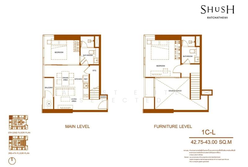 SHUSH Ratchathewi is a 32-storey condominium project situated along Phaya Thai Road in the heart of Ratchathewi CBD, just 140 metres from the Bangkok Transit System Ratchathewi Station and close to Siam Discovery within an 800 metres proximity. Developed by the Sansiri Public Company Limited, this project covers an area of approximately 3,200 square metres, featuring 383 units with living spaces ranging from 31.25-117.25 square metres, comprising 1-3 bedrooms and 1-3 bathrooms. Completion is expected in the year 2026 and the project adopts a freehold ownership structure. Due to its strategically advantageous location, residents of this project enjoy easy access to key destinations and lifestyle hubs. Within a 5 kilometre radius you have access to King Power Rangnam, Siam Paragon, Central World, MBK Center, Suan Dusit University and Rajavithi Hospital. In terms of convenient transportation, residents can choose from up to 4 connecting routes to other areas. These include Phetchaburi Road, approximately 120 metres from the project; Phitsanulok Road, about 1.1 kilometres away; Si Ayutthaya Road, roughly 1.6 kilometres away and Ratchathewi Road, approximately 2.6 kilometres away. SHUSH Ratchathewi embodies the concept of ‘Simphony,’ a new chapter in relaxed lifestyle living within the Ratchathewi CBD, seamlessly integrating green spaces and surrounded by an abundance of comprehensive amenities. Concealed ceiling air conditioning units Kitchen countertops adorned with large marble pattern tiles, equipped with wall-mounted and floor-standing cabinets. Electric stovetop, cooker hood, sink and microwave. Fully-equipped bathrooms with partitioned shower areas. ART DNA designed power outlets and switches. Installation of a 5 systems digital door lock from the Philips brand. The room configurations within the project are as follows: Loft units on 3rd-22th floors: With a ceiling height of 4.5 metres. The mezzanine has a ceiling height of 2.25 metres, while the bedroom area has a ceiling height of 2.2 metres. Common area expenses are calculated based on the actual title deed, specifically for the area on the 1st floor, excluding the mezzanine area. 1 Bedroom: This unit, with a title deed area of 28.50-28.75 square metres, has a living area 40.75-41.25 square metres, and is designed to accommodate 1 x bedroom, 1 x bathroom and 1 x foyer. 1 Bedroom: This unit, with a title deed area of 34.25-35.50 square metres, has a living area 49-50.50 square metres, and is designed to accommodate 1 x bedroom, 1 x bathroom and 1 x foyer. 2 Bedrooms: This unit, with a title deed area of 41.75-46.75 square metres, has a living area of 62.75-75.75 square metres, and is designed to accommodate 2 x bedrooms, 2 x bathrooms and 1x foyer. Simplex units on 23rd-24th floor and 26th-31st floor: With a ceiling height of 2.7 metres. 1 Bedroom: This unit, with a living area of 31.25-57.25 square metres, is designed to accommodate 1 x bedroom, 1 x bathroom and 1 x foyer. 2 Bedrooms: This unit, with a living area of 60 square metres, is designed to accommodate 2 x bedrooms, 1 x bathroom and 1 x foyer. 2 Bedrooms: This unit, with a living area of 70.25-89.50 square metres, is designed to accommodate 2 x bedrooms, 2 x bathrooms and 1 x foyer. 3 Bedrooms: This unit, with a living area of 97-117.25 square metres, is designed to accommodate 3 x bedrooms, 3 x bathrooms and 1 x foyer. SHUSH Ratchathewi is located adjacent to Phaya Thai Road, in the Phaya Thai Subdistrict, Ratchathewi District, Bangkok. To initiate travel to the project from Rama 1 Road, starting near Siam Paragon on the side facing the Phra Nakhon District, proceed for approximately 450 metres and make a right turn onto Phaya Thai Road. Continue on for another 900 metres and you will find the project sign on the left-hand side. For those coming from other routes, notable landmarks for navigation include: Ratchathewi Intersection: 200 metres from the project. Phaya Thai Intersection: 500 metres from the project. Uruphong Intersection: 2.1 kilometres from the project. Parking facilities: Accommodating 222 vehicles, equivalent to 58% of the total number of units. This includes 216 automated parking spaces and an additional 6 general parking spaces. The entire area is equipped with closed-circuit cameras (CCTV) and there are 24-hour security personnel. Elevators: The project features 3 passenger elevators and 1 cargo elevator. 1st Floor: A spacious lobby adorned with art installations, a waiting area for visitors, a public garden and a semi-outdoor observation point. 2nd Floor: Laundry room 3rd Floor: Garden view and cityscape observation grandstand. 24th Floor: Relaxation and viewing room, business meeting room, tutorial classroom, 2 x private relaxation room, entertainment room for gaming, listening to music and watching movies, plus a serene garden for relaxation. 25th Floor: Swimming pool with ozone system, approximately 25 metres in length; a segregated children's pool for safety; a fitness room equipped with a comprehensive range of exercise equipment 32nd Floor and Rooftop: Public park, serene garden, viewing point and backyard garden for growing vegetables. Personal assistant: Available every day from 8:00 am. - 8:00 pm. offering laundry services, room cleaning, parcel delivery and event planning reservation services. Water system: Within both the residential units and common areas, the HYDRO SMART water system is implemented to reduce dregs in the sanitary ware. Security system: Keycard access, digital door locks are installed in every unit, CCTV coverage, 24/7 personnel and a LIV-24 security system by Sansiri, ensure constant security surveillance. SHUSH Ratchathewi is centrally located in the Ratchathewi CBD, offering a highly convenient and bustling urban lifestyle. Details are further outlined as follows. Taxis available in front of the project. Motorcycle taxis available in front of the project. Bangkok Transit System Ratchathewi Station: 170 metres from the