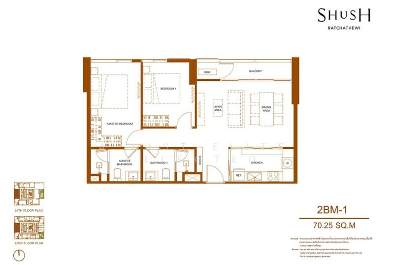 SHUSH Ratchathewi is a 32-storey condominium project situated along Phaya Thai Road in the heart of Ratchathewi CBD, just 140 metres from the Bangkok Transit System Ratchathewi Station and close to Siam Discovery within an 800 metres proximity. Developed by the Sansiri Public Company Limited, this project covers an area of approximately 3,200 square metres, featuring 383 units with living spaces ranging from 31.25-117.25 square metres, comprising 1-3 bedrooms and 1-3 bathrooms. Completion is expected in the year 2026 and the project adopts a freehold ownership structure. Due to its strategically advantageous location, residents of this project enjoy easy access to key destinations and lifestyle hubs. Within a 5 kilometre radius you have access to King Power Rangnam, Siam Paragon, Central World, MBK Center, Suan Dusit University and Rajavithi Hospital. In terms of convenient transportation, residents can choose from up to 4 connecting routes to other areas. These include Phetchaburi Road, approximately 120 metres from the project; Phitsanulok Road, about 1.1 kilometres away; Si Ayutthaya Road, roughly 1.6 kilometres away and Ratchathewi Road, approximately 2.6 kilometres away. SHUSH Ratchathewi embodies the concept of ‘Simphony,’ a new chapter in relaxed lifestyle living within the Ratchathewi CBD, seamlessly integrating green spaces and surrounded by an abundance of comprehensive amenities. Concealed ceiling air conditioning units Kitchen countertops adorned with large marble pattern tiles, equipped with wall-mounted and floor-standing cabinets. Electric stovetop, cooker hood, sink and microwave. Fully-equipped bathrooms with partitioned shower areas. ART DNA designed power outlets and switches. Installation of a 5 systems digital door lock from the Philips brand. The room configurations within the project are as follows: Loft units on 3rd-22th floors: With a ceiling height of 4.5 metres. The mezzanine has a ceiling height of 2.25 metres, while the bedroom area has a ceiling height of 2.2 metres. Common area expenses are calculated based on the actual title deed, specifically for the area on the 1st floor, excluding the mezzanine area. 1 Bedroom: This unit, with a title deed area of 28.50-28.75 square metres, has a living area 40.75-41.25 square metres, and is designed to accommodate 1 x bedroom, 1 x bathroom and 1 x foyer. 1 Bedroom: This unit, with a title deed area of 34.25-35.50 square metres, has a living area 49-50.50 square metres, and is designed to accommodate 1 x bedroom, 1 x bathroom and 1 x foyer. 2 Bedrooms: This unit, with a title deed area of 41.75-46.75 square metres, has a living area of 62.75-75.75 square metres, and is designed to accommodate 2 x bedrooms, 2 x bathrooms and 1x foyer. Simplex units on 23rd-24th floor and 26th-31st floor: With a ceiling height of 2.7 metres. 1 Bedroom: This unit, with a living area of 31.25-57.25 square metres, is designed to accommodate 1 x bedroom, 1 x bathroom and 1 x foyer. 2 Bedrooms: This unit, with a living area of 60 square metres, is designed to accommodate 2 x bedrooms, 1 x bathroom and 1 x foyer. 2 Bedrooms: This unit, with a living area of 70.25-89.50 square metres, is designed to accommodate 2 x bedrooms, 2 x bathrooms and 1 x foyer. 3 Bedrooms: This unit, with a living area of 97-117.25 square metres, is designed to accommodate 3 x bedrooms, 3 x bathrooms and 1 x foyer. SHUSH Ratchathewi is located adjacent to Phaya Thai Road, in the Phaya Thai Subdistrict, Ratchathewi District, Bangkok. To initiate travel to the project from Rama 1 Road, starting near Siam Paragon on the side facing the Phra Nakhon District, proceed for approximately 450 metres and make a right turn onto Phaya Thai Road. Continue on for another 900 metres and you will find the project sign on the left-hand side. For those coming from other routes, notable landmarks for navigation include: Ratchathewi Intersection: 200 metres from the project. Phaya Thai Intersection: 500 metres from the project. Uruphong Intersection: 2.1 kilometres from the project. Parking facilities: Accommodating 222 vehicles, equivalent to 58% of the total number of units. This includes 216 automated parking spaces and an additional 6 general parking spaces. The entire area is equipped with closed-circuit cameras (CCTV) and there are 24-hour security personnel. Elevators: The project features 3 passenger elevators and 1 cargo elevator. 1st Floor: A spacious lobby adorned with art installations, a waiting area for visitors, a public garden and a semi-outdoor observation point. 2nd Floor: Laundry room 3rd Floor: Garden view and cityscape observation grandstand. 24th Floor: Relaxation and viewing room, business meeting room, tutorial classroom, 2 x private relaxation room, entertainment room for gaming, listening to music and watching movies, plus a serene garden for relaxation. 25th Floor: Swimming pool with ozone system, approximately 25 metres in length; a segregated children's pool for safety; a fitness room equipped with a comprehensive range of exercise equipment 32nd Floor and Rooftop: Public park, serene garden, viewing point and backyard garden for growing vegetables. Personal assistant: Available every day from 8:00 am. - 8:00 pm. offering laundry services, room cleaning, parcel delivery and event planning reservation services. Water system: Within both the residential units and common areas, the HYDRO SMART water system is implemented to reduce dregs in the sanitary ware. Security system: Keycard access, digital door locks are installed in every unit, CCTV coverage, 24/7 personnel and a LIV-24 security system by Sansiri, ensure constant security surveillance. SHUSH Ratchathewi is centrally located in the Ratchathewi CBD, offering a highly convenient and bustling urban lifestyle. Details are further outlined as follows. Taxis available in front of the project. Motorcycle taxis available in front of the project. Bangkok Transit System Ratchathewi Station: 170 metres from the