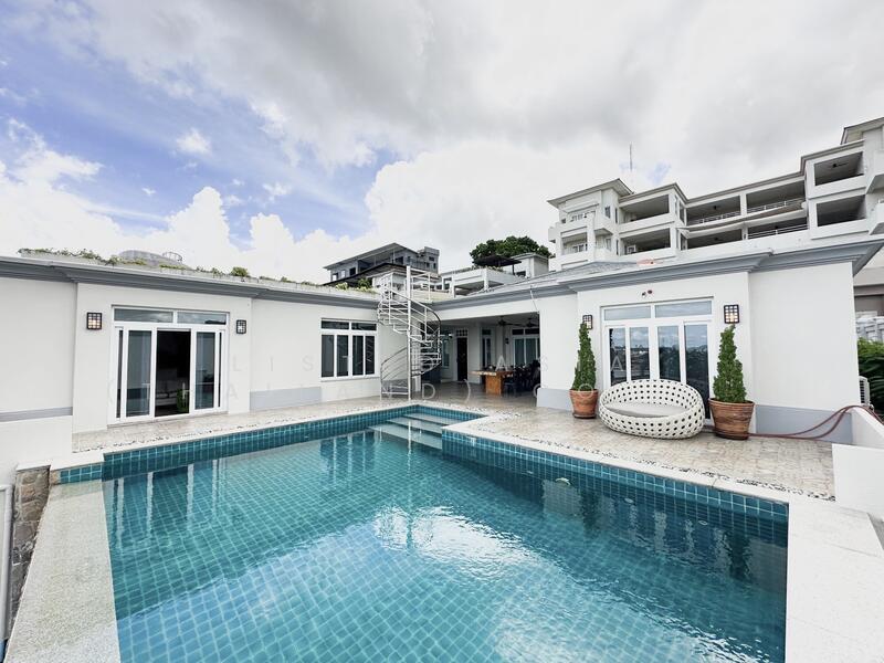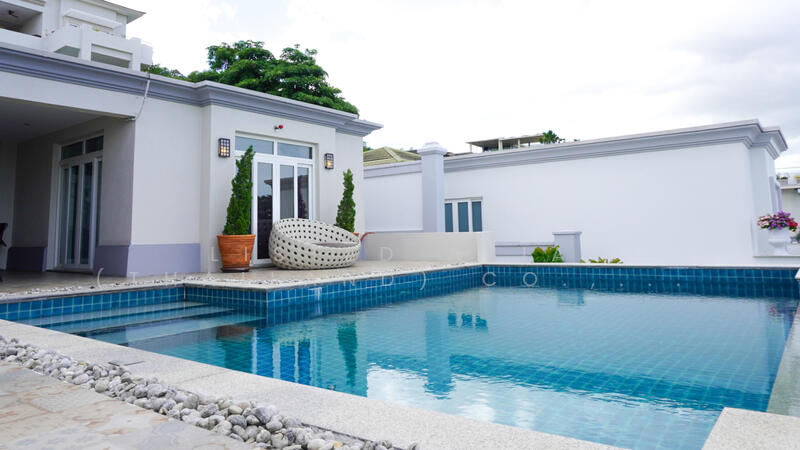 Pool Villa in Siam Royal View for Sale – This stunning 5-bedroom, 6-bathroom pool villa is located in the exclusive Siam Royal View community, offering a generous 548 SQM land plot and 480 SQM of living space. The villa comes fully furnished, with a beautifully designed, built-in European kitchen featuring top-of-the-line appliances and a central island, perfect for entertaining. The spacious living area is equipped with a comfortable sofa, ideal for relaxation. Each bedroom includes an en-suite bathroom and built-in wardrobe for ultimate convenience and comfort. The property also boasts a rooftop with a seating area, offering panoramic views of the surrounding area. Outdoors, you’ll find a private swimming pool and ample parking space, making this villa a perfect choice for luxurious living. Located in a peaceful, secure community, this property combines both privacy and accessibility to Pattaya’s amenities.