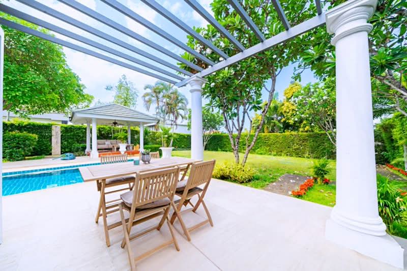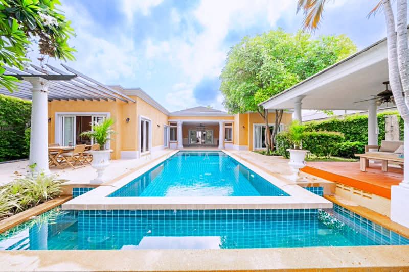 Experience upscale living in this stunning pool villa at Siam Royal View Pattaya, one of Pattaya’s most prestigious hillside communities. Set on a generous 1,050 sqm land plot with 450 sqm of living space, this elegant single-storey home offers privacy, space, and a resort-style atmosphere.