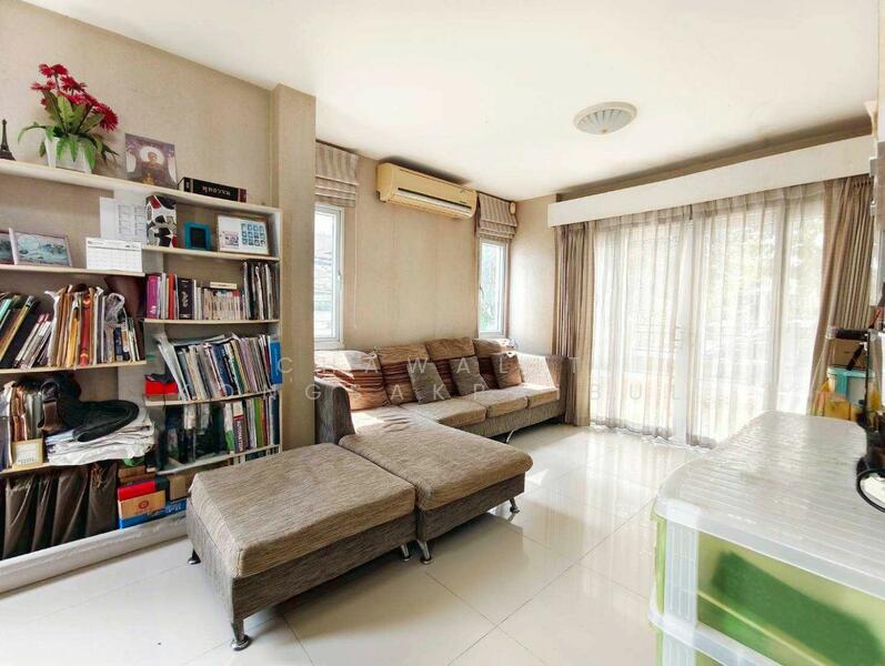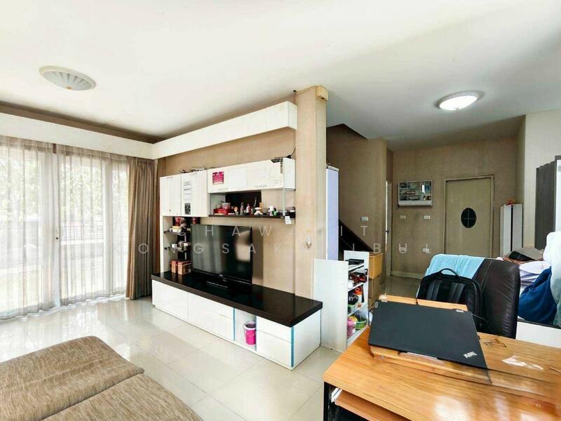Single house for sale in Living Nara Rangsit Klong 4, a project located on Rangsit-Nakhon Nayok Road. Features include an extended garage and some built-in furniture.
