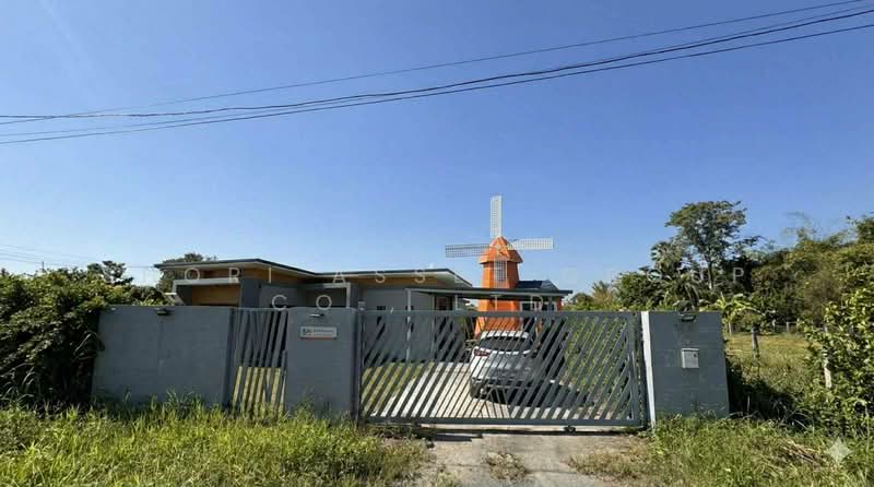 Single-story house for sale with land, small office, and warehouse behind the office, San Kamphaeng.