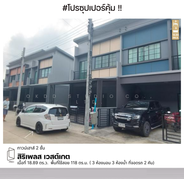 ทาวน์เฮาส์ สิริเพลส เวสต์เกต ใกล้เซ็นทรัล