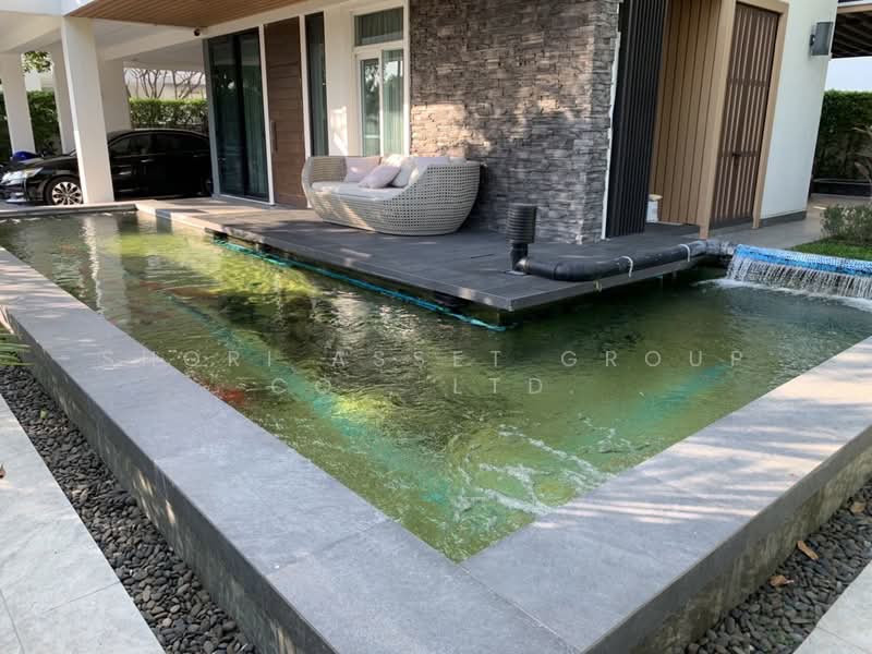 Luxury house for sale in Serene Lake Chiangmai, Siwalee Lakeview project. Beautiful house with koi pond, fully furnished, lake view.