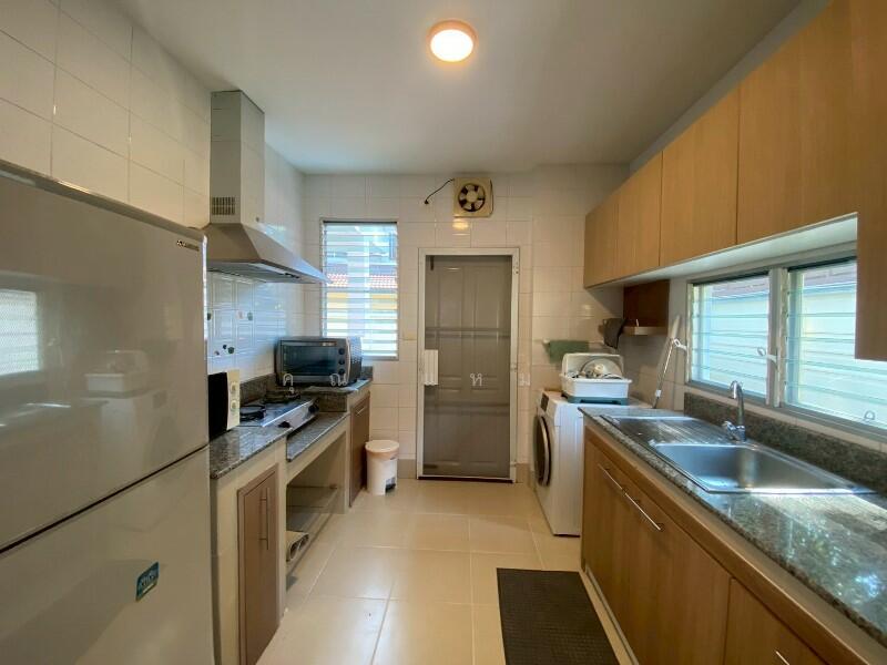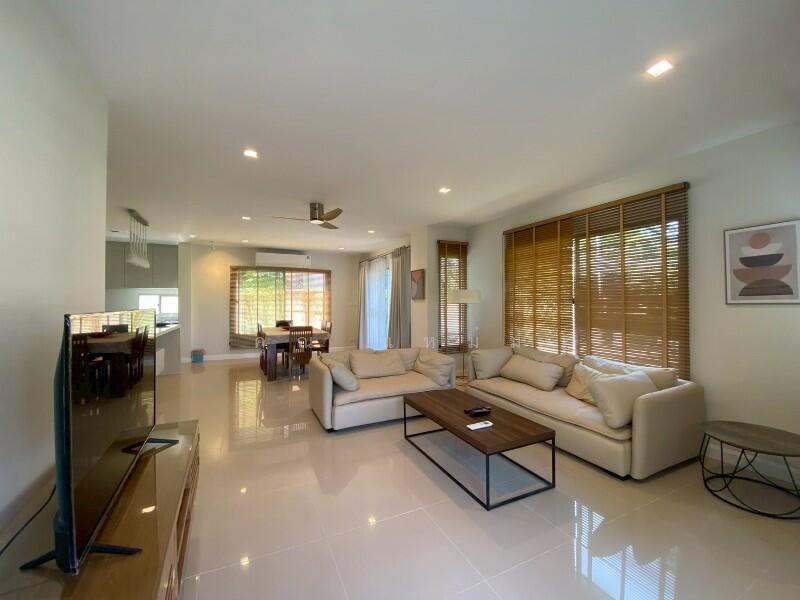 Sivalee Ratchaphruek The house is fully furnished . It’s in 2 floors and with a small balcony. 3 bedrooms,3 bathroom, 4 Air , a living room and a kitchen. Land size 110 sq.wah house area 220 sq.m The outside area features a small and very well decorated garden and a big car park. The moo baan where it is located is very big and spacious, the houses here are not located right next to each other, here there is air and space to breath, playgrounds for the children, swimming pool and fitness. Rent: THB 52,000/month. *** No pets allowed ***