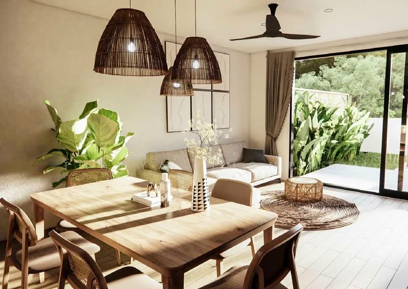 Scheduled for completion in March 2026, the townhouse features a bright open-plan layout with a stylish living and dining area, a modern kitchen, and large sliding doors that open to a private garden—ideal for outdoor dining or quiet afternoons. Upstairs, both bedrooms are well-proportioned, with built-in wardrobes and natural light throughout. A shared bathroom and additional guest toilet provide everyday convenience.