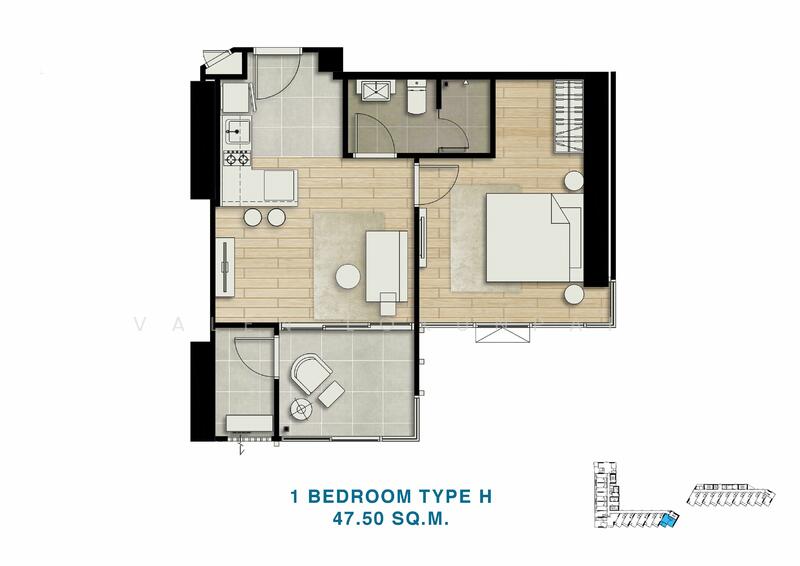 Fully furnished 1 bedroom, 1 bathroom condo for sale with a floorsize of 47.52 squaremeters, located on the 7th floor, at Skypark