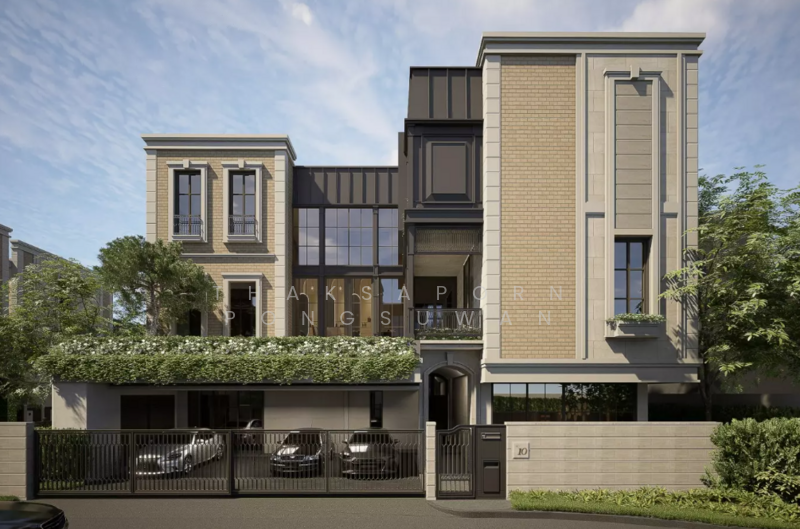 บ้านเดี่ยวหรู 3 ชั้น สไตล์ Urban Twist ผสมผลานความคลาสสิค Federal Architecture ประกอบกับความ Modern ทำให้ตัวบ้านมีความสวยงามแบบ Timeless สำหรับบ้านของโครงการเป็นบ้านแปลงมุมทุกหลัง แบบบ้านมีให้เลือก 2 แบบ ที่ดินเริ่มต้น 102-133 ตร.ว. พื้นที่ใช้สอยมากถึง 816 ตร.ม. พร้อมสระว่ายน้ำส่วนตัวทุกหลัง พร้อมติดตั้งลิฟท์ภายในบ้าน