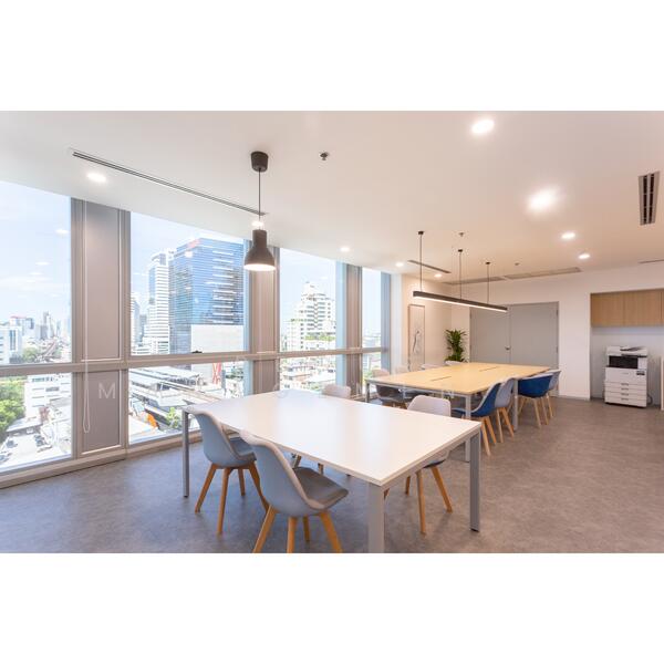 The building itself has a stylish, minimalist exterior, with bright, colourful offices and communal areas inside. Snack at local bars, cafés and restaurants when you need a break, or take in some culture at the Victory Monument, just a 10-minute walk away.