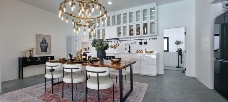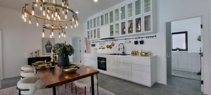 This is Modern 5 Bedrooms, 6 Bathrooms Villa for Sale in East Pattaya. Is Available in Thai Company Name Ownership, sitting on 424 of land plot size, 200 Sqm of usable area, comes full furnished, European kitchen , brand new furniture throughout the house, spacious living room with direct pool access, bedroom with en-suite, built in wradrobe, poolside deck & sunbathing area.