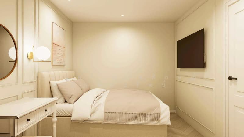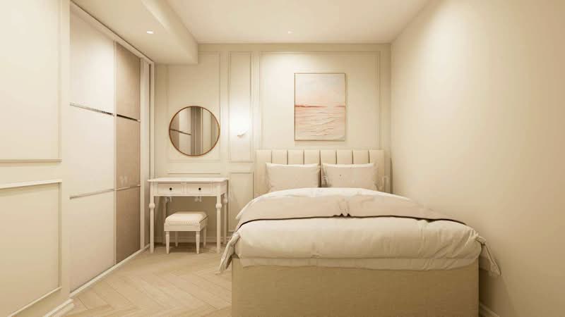 A newly designed condominium inspired by warm European living, offering the atmosphere of a refined Boutique Home. The interior reflects a Parisian Soft Modern style, blending elegant mouldings, soft curves, and warm cream-beige tones to create a gentle and luxurious living environment.