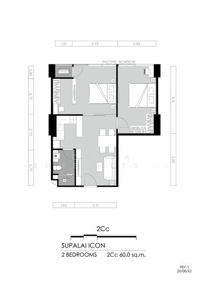 2 bedrooms, 2 bathrooms condo for sale with a floorsize of 59.68 squaremeters, located on the 31st floor, at Supalai Icon Sathon