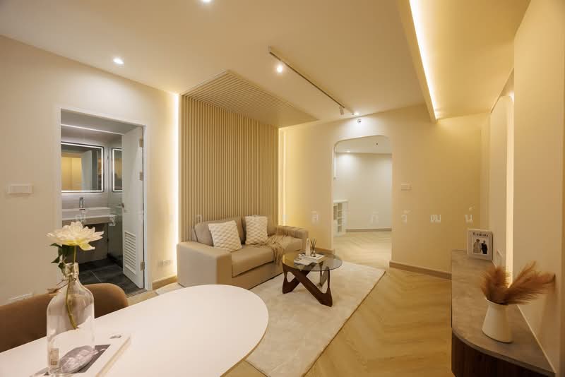 2 ห้องนอน 1 ห้องน้ำ 58.85 ตร.ม. ชั้น 15 ออกแบบรีโนเวทใหม่ทั้งหมด 𝟏𝟎𝟎% เพื่อตอบโจทย์พื้นที่อยู่อาศัยที่ใหญ่ขึ้นสำหรับคุณ