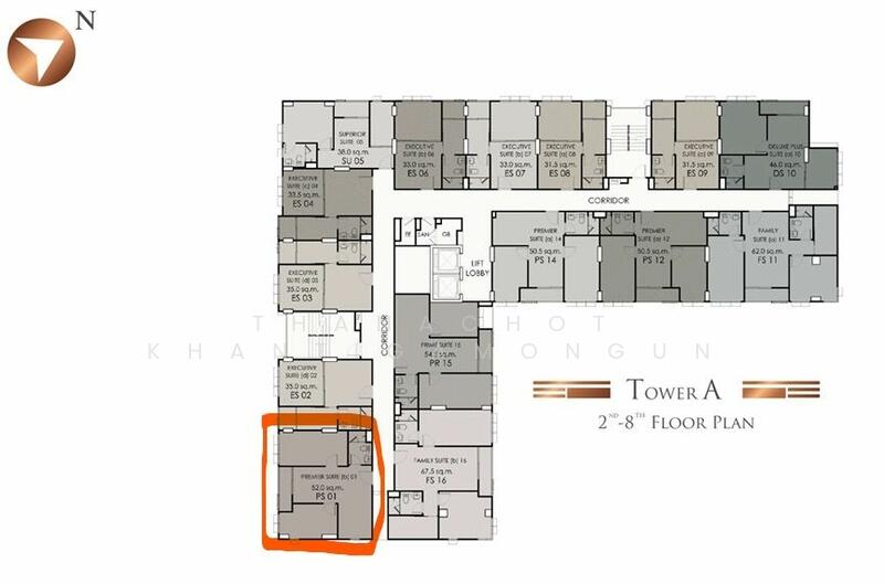 Lovely 2 bedrooms, 1 bathroom condo for sale with a floorsize of 52 squaremeters, located on the 8th floor, at Supalai Prime Rama