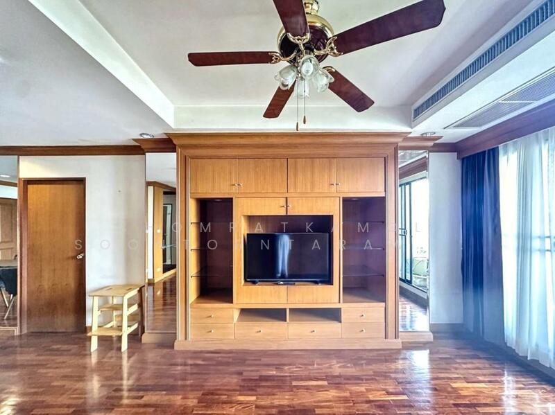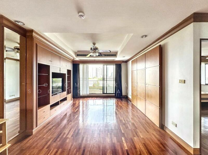 Experience the epitome of urban living at Supreme Ville, nestled within the vibrant heart of Sathon, Bangkok. This exquisite 2-bedroom, 2-bathroom condo, located on the 7th floor of an eight-story complex, offers a generous interior space of 118.84 sqm. The unit showcases fully furnished interiors, featuring polished hardwood flooring, expansive windows, and seamless wood trims that accentuate its open-plan layout. The condo’s interior is further elevated by modern amenities, including ceiling fans, built-in cabinetry, and recessed lighting.