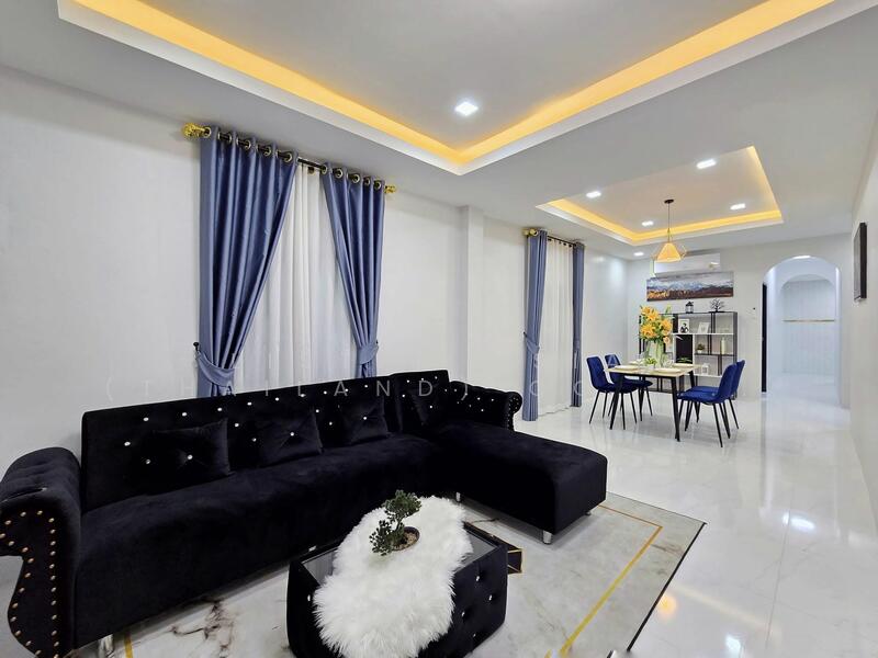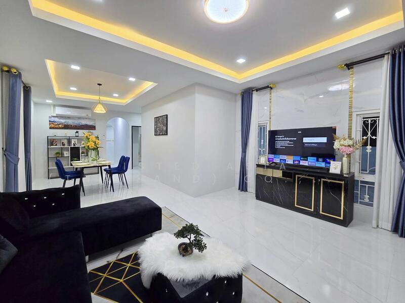 3 Beds House in East Pattaya for Sale – This well house offers a comfortable and convenient living space, sitting on a 200 Sqm land plot. It features a spacious living room, dining area, and a built-in kitchen equipped with a gas stove and range hood. The house also includes ample parking space for 4 cars inside the property. The home comes fully furnished, with a sofa set, TV stand, and a 55-inch TV, and 4 air conditioners installed in every room for maximum comfort. The dining table set with 4 chairs is also included. Each of the 3 bedrooms is furnished with complete bedroom furniture. Additionally, curtains are installed throughout the house, ensuring privacy and style. The house is move-in ready, as it is fully decorated with all necessary furniture, so you can simply move in with your luggage. Perfect for anyone looking for a ready-to-live-in home in East Pattaya!