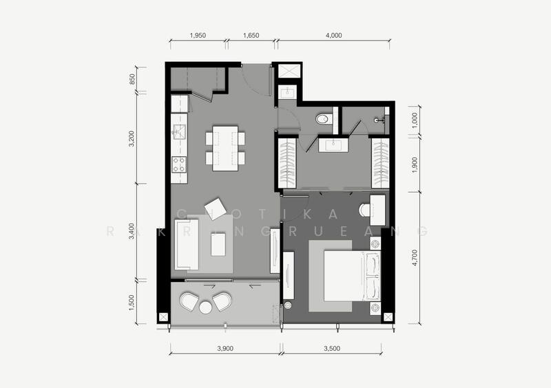 Floor size of this unit at Tait Sathorn 12 is 68 sqm.