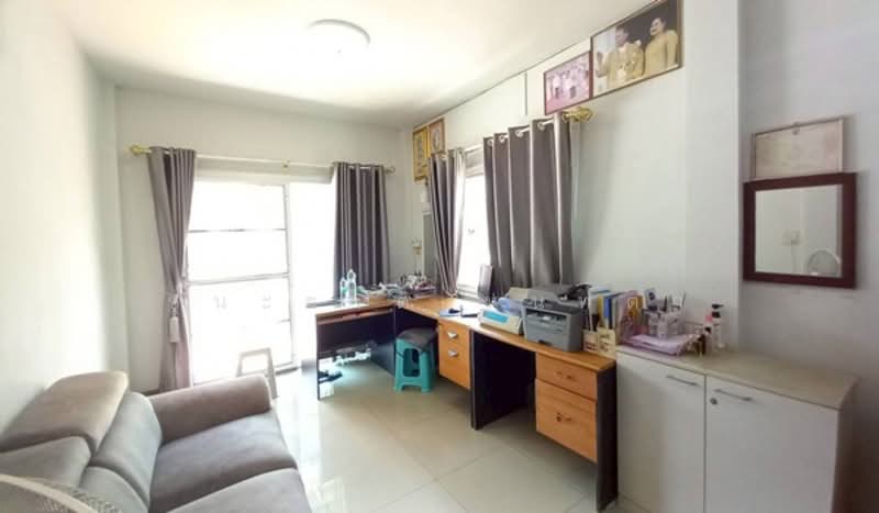 การตกแต่ง : บ้านหันหน้าออกไปทางทิศตะวันออก อยู่ติดถนนเมนหลัก บ้านสวยสะอาดพื้นห้องชั้นล่างจะปูด้วยกระเบื้อง Cotto ชั้นบน จะปูด้วยลามิเนต ฝ้าเพดานเป็นฝ้าเรียบ โซนหน้าบ้านต่อเติมโรงจอดรถพร้อมปูกระเบื้องให้เรียบร้อย พื้นบริเวณหน้าบ้านและข้างบ้านตอกเสาเข็มให้เรียบร้อย โซนหลังบ้านต่อเติมห้องครัวพร้อมเคาน์เตอร์ และมีพื้นที่สามารถปลูกไม้ดอกไม้ประดับหรือพืชผักสวนครัวตามความต้องการภายในบ้านติดแต่ตัดมุ้งลวดแถมแอร์ 3 เครื่องภายในโครงการมีสิ่งอำนวยความสะดวกอาทิเช่น รปภ 24 ชั่วโมงสนามเด็กเล่น บรรยากาศหมู่บ้านเงียบสงบเพื่อนบ้านน่ารักอัธยาศัยดีแอเรียโลเคชั่นแวดล้อมไปด้วยห้างสรรพสินค้าศูนย์หน่วยงานราชการต่างๆตลาดนัดชุมชนการเดินทางเข้าออกสะดวกสบายหลายเส้นทาง " ทรัพย์ส่วยทำเลดีน่าลงทุน "