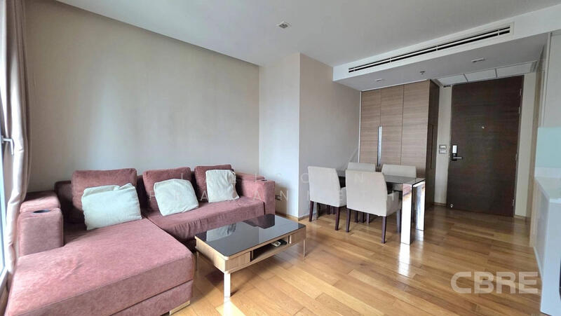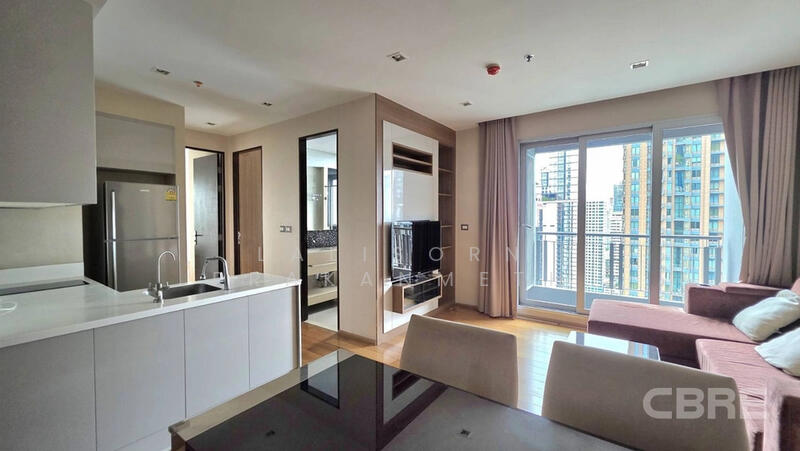 A bright, contemporary 2-bedroom, 2-bathroom condominium with an open, unblocked city view. The unit is fully furnished in a modern minimalist style and ready to move in — includes living/dining set, built-in wardrobes, beds, air-conditioning, a modern fitted kitchen with appliances, and window treatments. High-floor position ensures excellent daylight and panoramic city views. Secure building with elevator access, gym and pool facilities (subject to building). Ideal for professionals who want fast links to Asoke and the wider city.