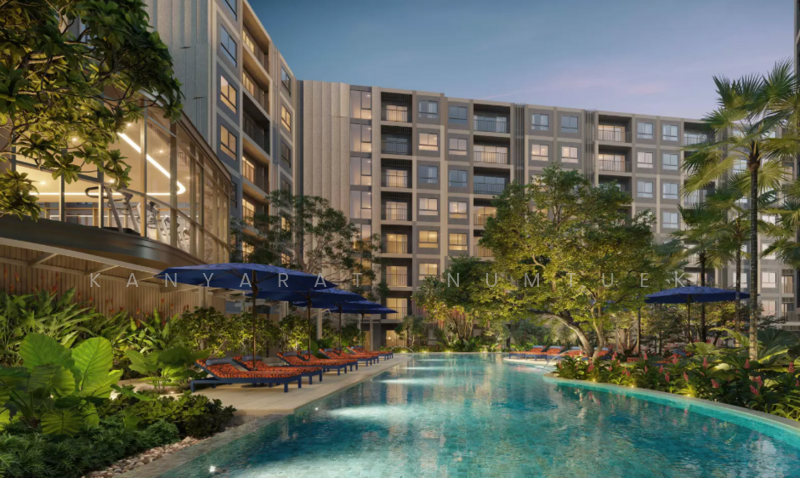 The Base Cherngtalay (The Base Cherngtalay) Low Rise Condo from Sansiri in the Cherngtalay location, Phuket Province, which is a location that is becoming increasingly popular, near Bang Tao Beach and Villa Market Laguna, comes with the Pet-Friendly concept, pets are allowed. There are 2 types of rooms to choose from: 1 Bedroom and 2 Bedrooms. The residential building surrounds the common area, convenient to use and also has a beautiful common view. Starting price is 2.89 million baht.