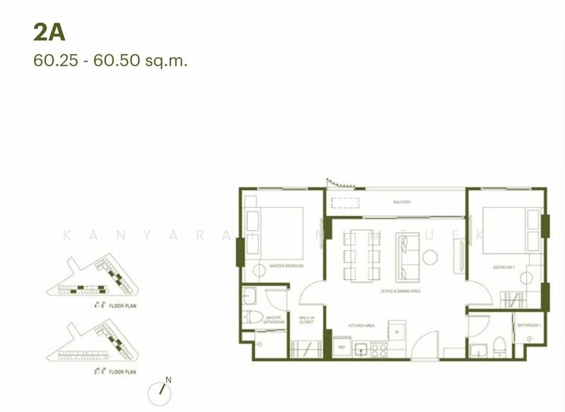 Floor size of this unit at THE Base Cherngtalay is 60 sqm.