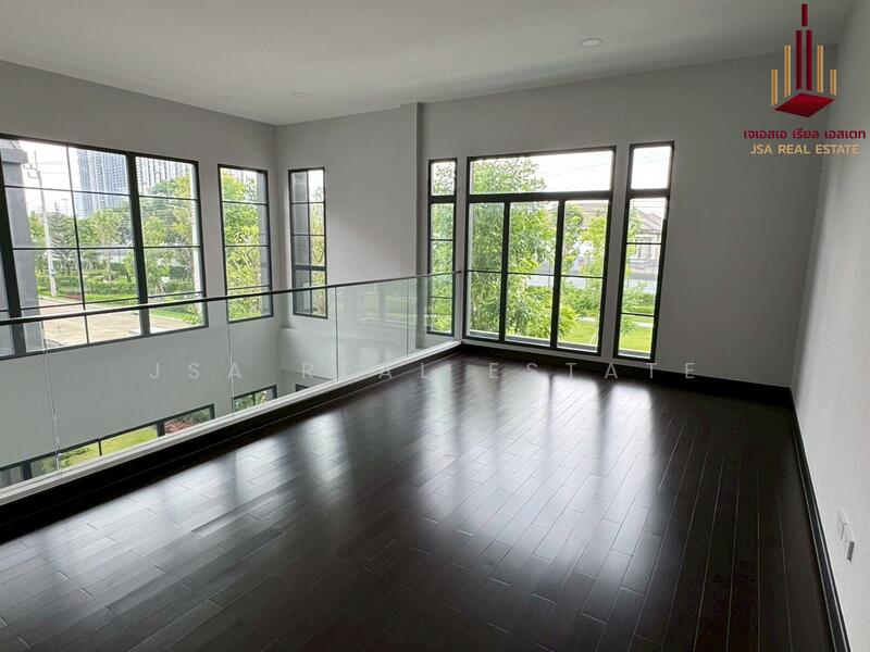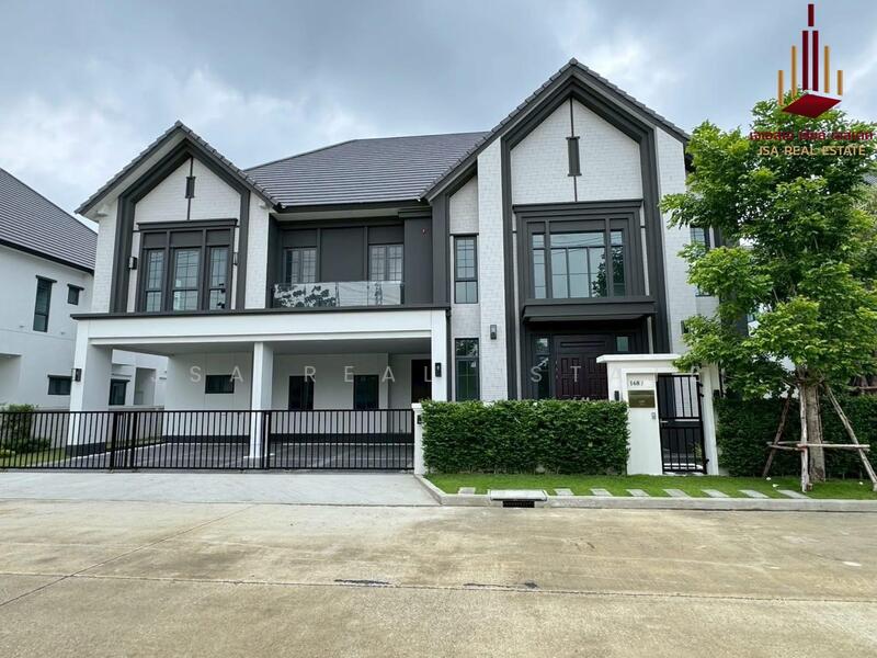 THE CITY Bangna 2 project , a large single house in an English style for you. The house has a distinctive feature of a large plot of land starting at 100 sq.w., usable area starting at 390 - 580 sq.m., near MEGA BANGNA and Concordian International School, starting price 26.9 million baht, with interesting highlights as follows: Location : The project is located on the Kanchanaphisek Ring Road, which can be accessed by a shortcut to MEGA BANGNA in just 1.5 kilometers. It is also close to Concordian International School and D-PREP International School in 1-2 kilometers, as well as the entrance and exit of 2 expressways, Kanchanaphisek Road and Burapha Withi Road, making it convenient to enter and exit the city. Common area atmosphere : The project is designed to emphasize a shady atmosphere with a large green garden and a clubhouse with high ceilings and complete functions including a fitness center, swimming pool, and an area for family activities. Suitable for those who like a common area with a good atmosphere and practical use. New house designs and usable space : This is considered a new design of THE CITY house, different from previous projects. Designed in the English Tudor Architecture style, it is unique with a high gable shape, emphasizing black and white tones, decorated with bricks and wood. There are 4 house designs, emphasizing starting usable space of 390 - 580 square meters, supporting up to 5 bedrooms.